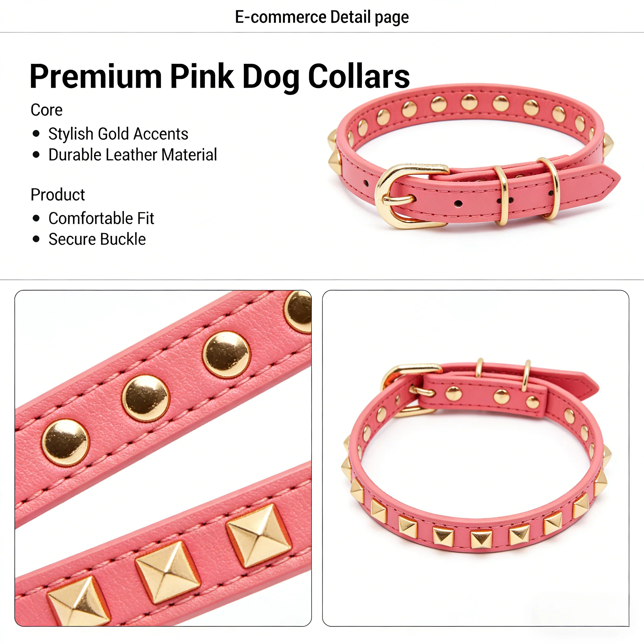 Collari per Cani/Gatti Rosa con Borchie Eleganti, Collari in Pelle Regolabili, Accessori per Animali, Abbigliamento Alla Moda per Animali