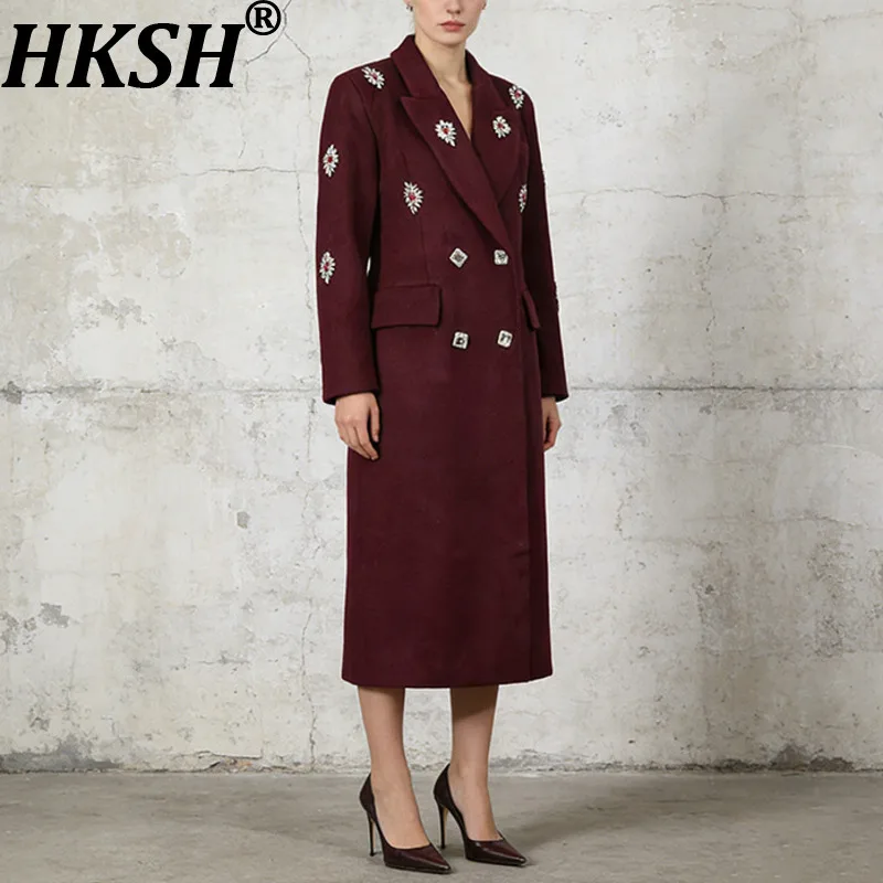 HKSH Trench da Donna con Borchie Diamantate, Doppiopetto, Slim Fit, Stile Francese di Alta Gamma, Giacca Lunga Antivento, Nuova Collezione Primavera 2026 HK19625
