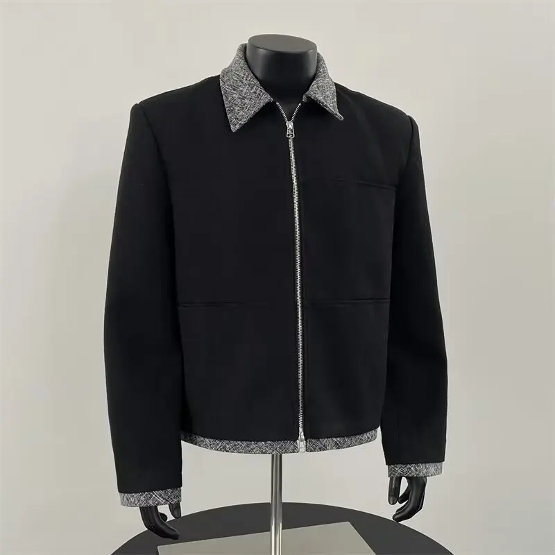 Cappotto in misto lana coreano da uomo con pois, macchie, strappi e borchie, molto apprezzato