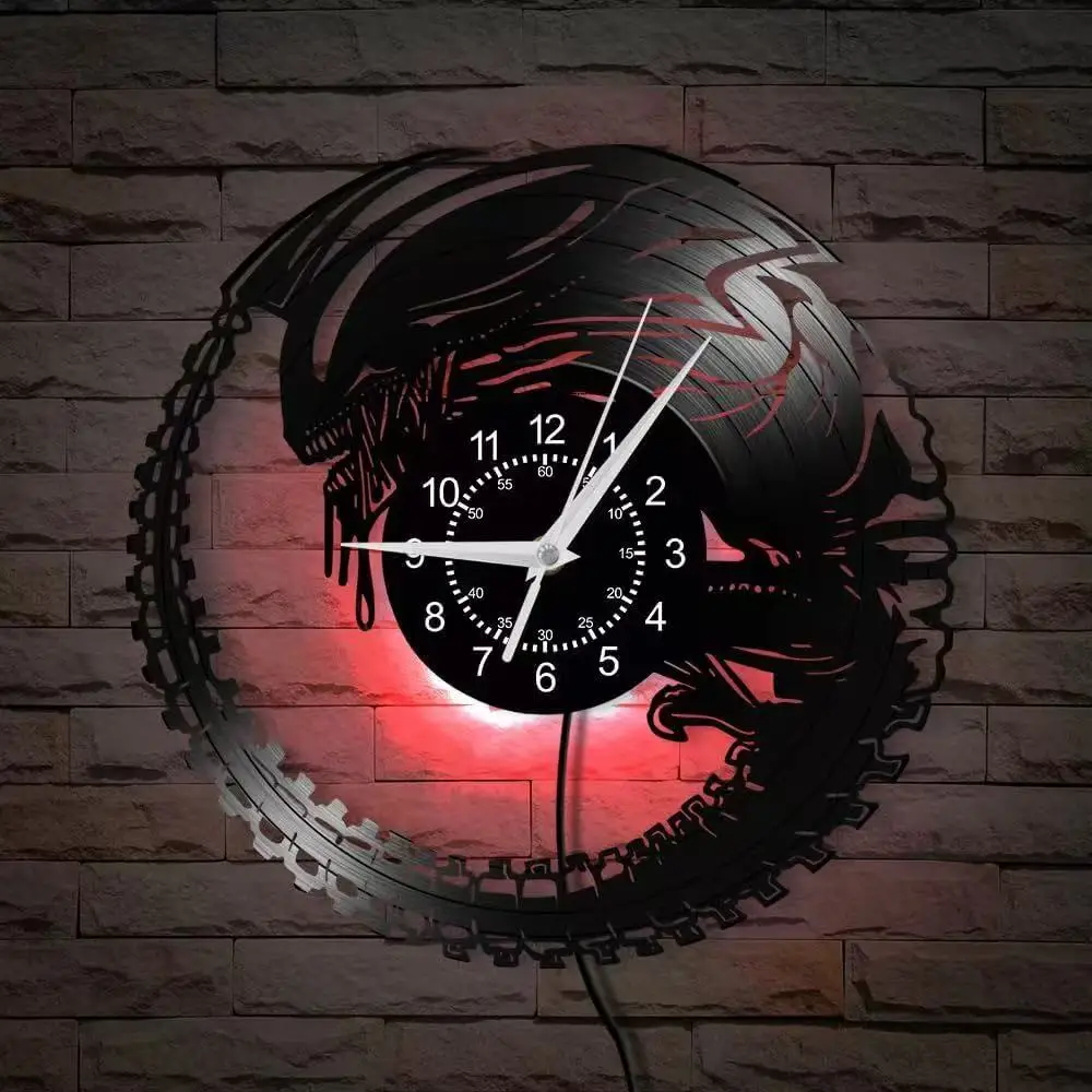 Smart Beings Alien Horror Xenomorph Orologio da parete con disco in vinile per bambini Orologio da parete extra resistente a 7 colori con luce notturna a LED