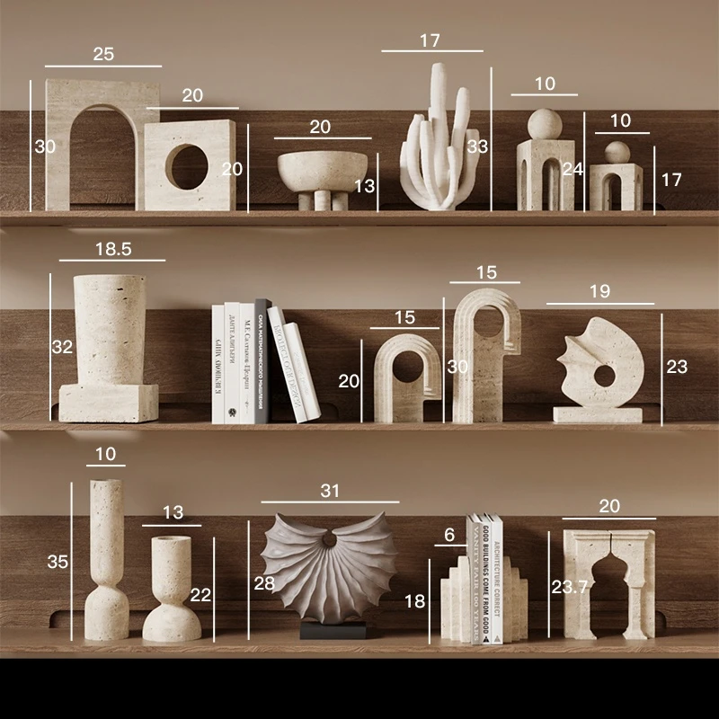 Scultura astratta in travertino giallo-Decor vintage Wabi Sabi per casa modello, soggiorno e tavolo, pezzo d'arte con texture organica