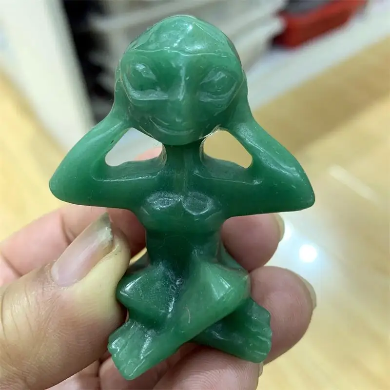Statua alieno per meditazione avventurina verde naturale intagliata donna yoga corpo scultura gioielli artigianato guarigione per regalo 1 pz