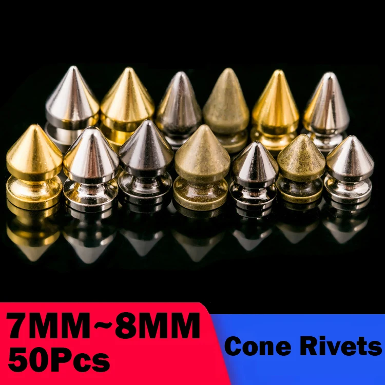 10 pezzi cono 7 ~ 8 mm punti borchie metalliche rivetti artigianali in pelle punk punta proiettile punte rivetti per collare in pelle
