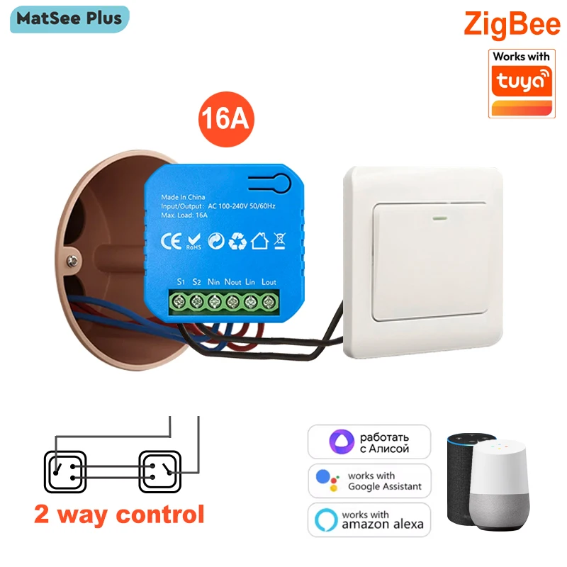 Modulo Interruttore Smart ZigBee con Monitoraggio Energetico e Timer, 16A, Controllo Remoto, Compatibile con Google Home e Alexa