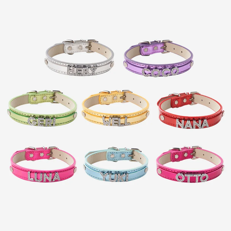 Collare per animali domestici tempestato di cristalli personalizzato Collana per animali domestici con lettera fai-da-te di colore brillante con etichetta con nome per collare per animali domestici personalizzato per cani gatti