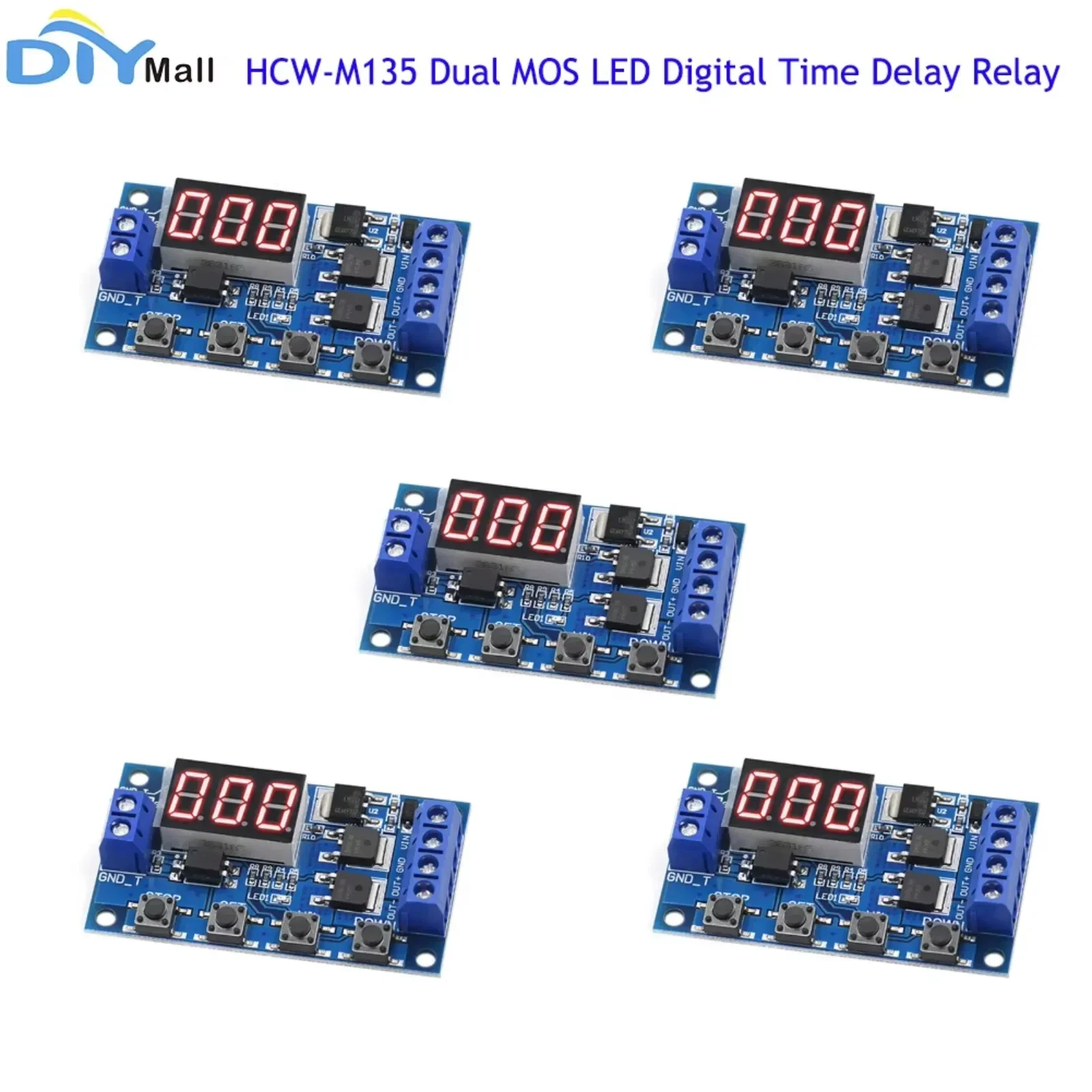 5 pz HCW-M135 Relè Digitale a Doppio MOS LED per Ritardo Temporale, Modulo di Controllo Temporizzazione con Trigger Ciclico e Interruttore a Ritardo per Scheda Circuito