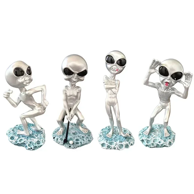 Statua da giardino artigianale in resina alieno spaziale vintage, scultura nana creativa in miniatura per Halloween, decorazione per il desktop della casa