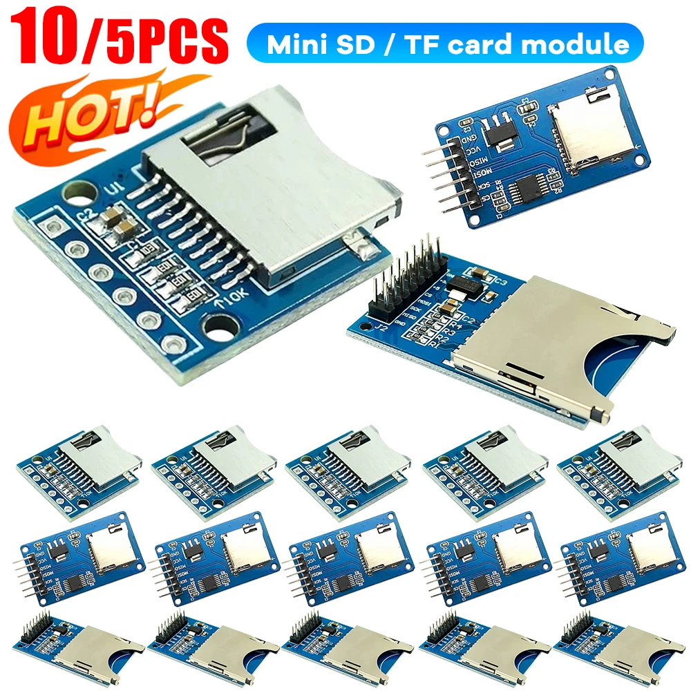 Scheda di espansione memoria Micro SD da 5/10 pezzi 3,3 V; Modulo di protezione memoria scheda Mini Micro SD TF con pin per Arduino