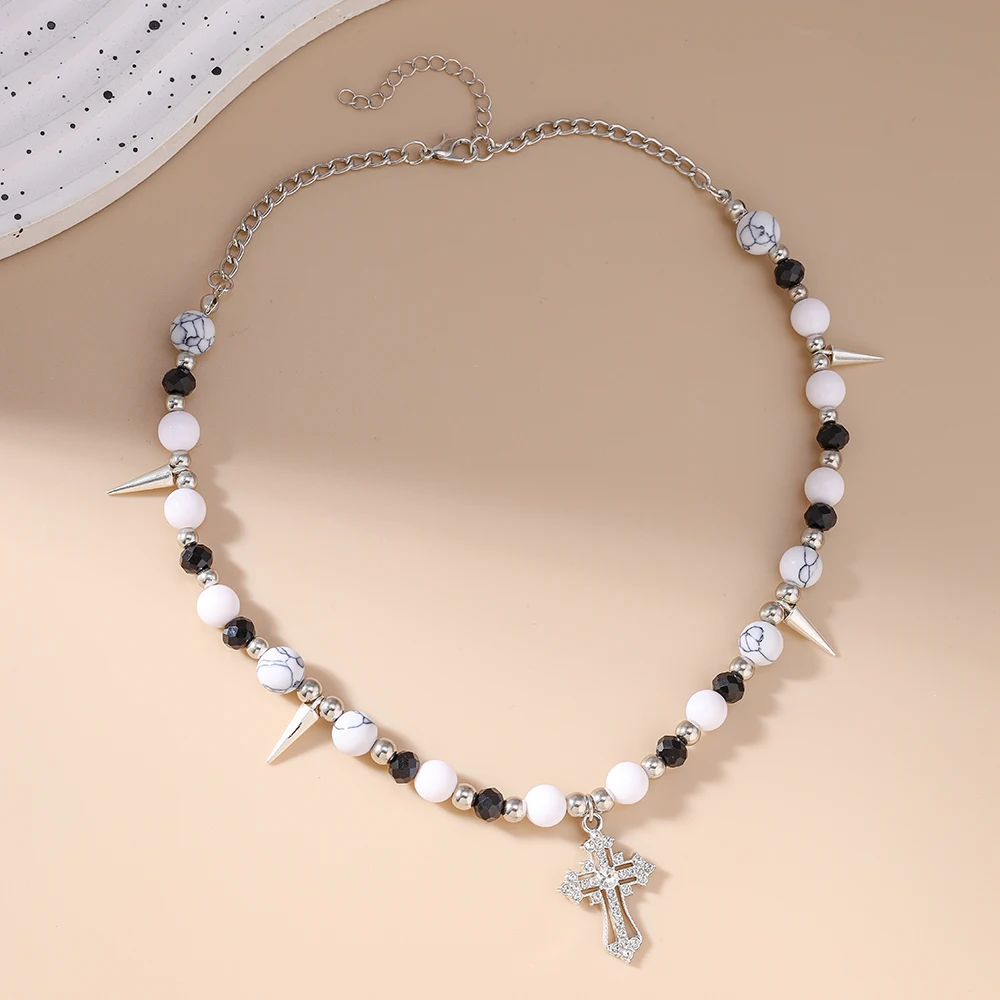 Aihua Goth Cool Y2K Croce Ciondolo Collana con punte di perline per donna Uomo Collare con rivetti Girocolli Kpop Estetica Grunge Gioielli Regali