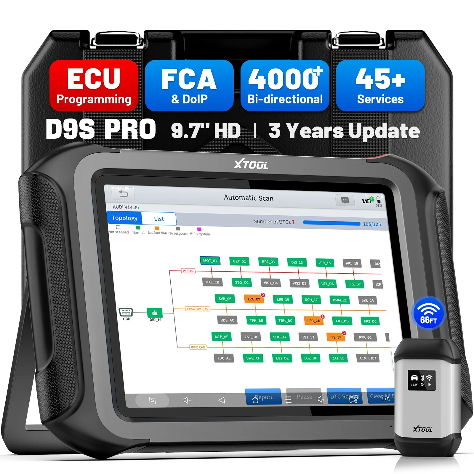 XTOOL D9S PRO Strumento Diagnostico Auto, Programmatore ECU, Scanner Automobilistico, Programmazione Chiavi, Mappa Topologica, 45+ Reset, FCA/CANFD/DOIP