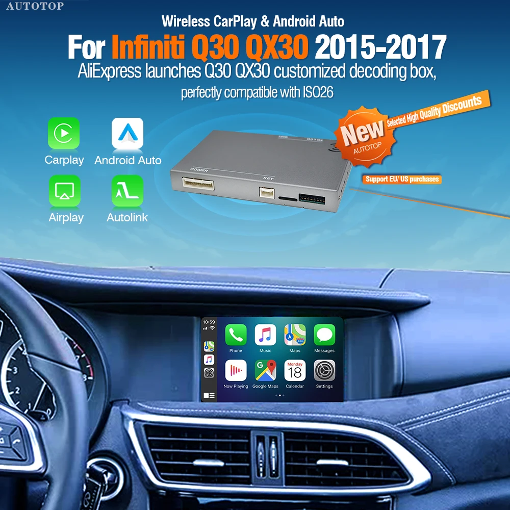 AUTOTOP Decoder Wireless CarPlay Android Auto per Infiniti QX30 Q30 2015-2019, Modulo Auto con Mirror Link, AirPlay, AUX, Bluetooth, GPS
