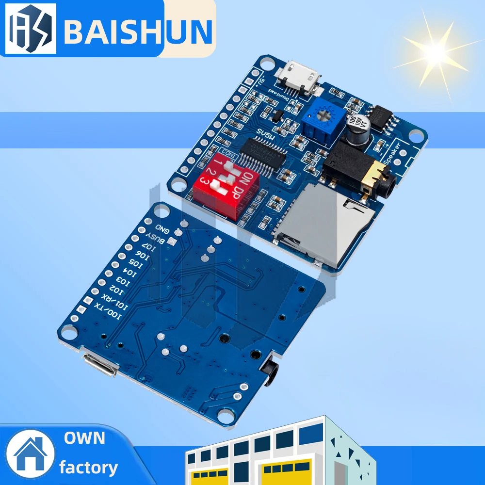 Modulo audio vocale per modulo lettore MP3 Arduino scheda amplificatore UART i/o Trigger classe D 5W 8M memoria scheda SD/TF DY1703A