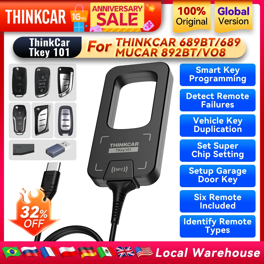 THINKCAR TKEY 101 Attrezzatura universale per programmatore di chiavi per auto con chiave remota a 6 unità Supporta sistema antifurto per MUCAR 892BT 689BT