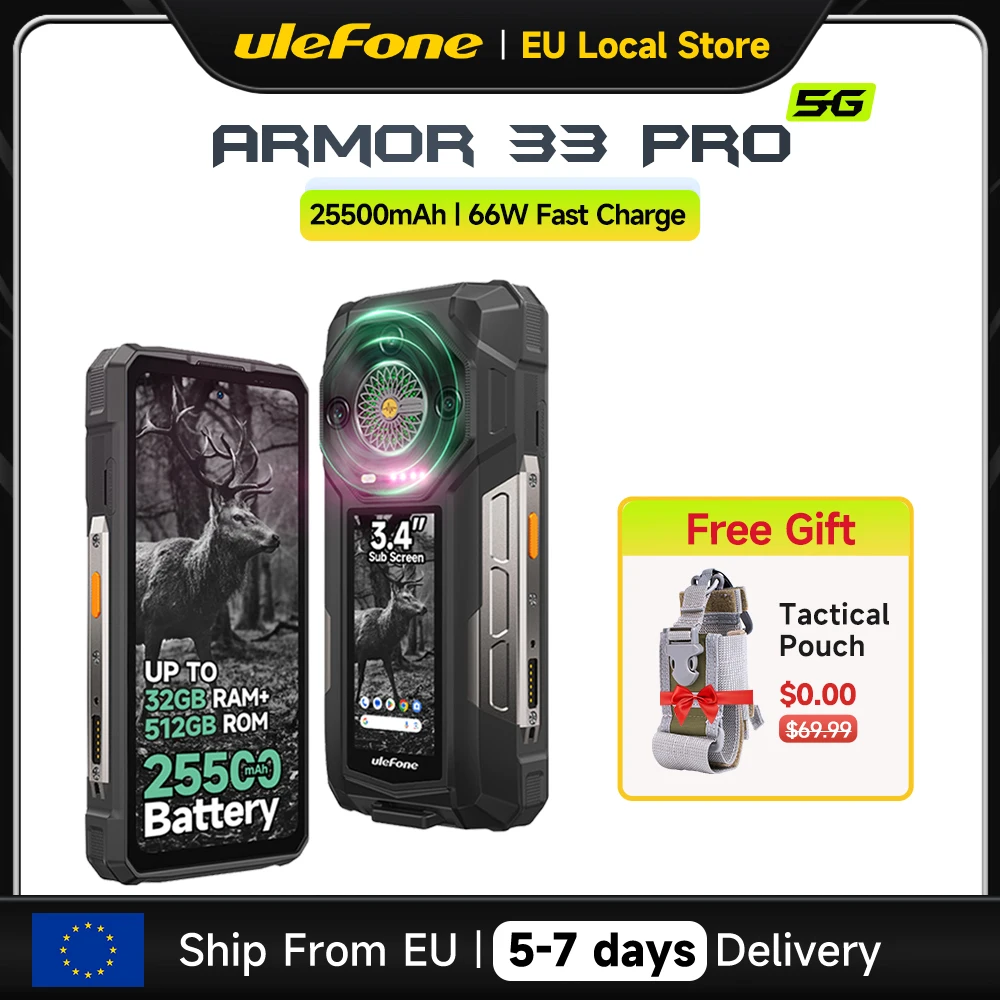 Ulefone Armor 33 Pro 5G Telefono robusto 25500 mAh 512 GB ROM 120 Hz Doppio schermo 6,59 "3,4" Schermo posteriore NFC Smartphone Android