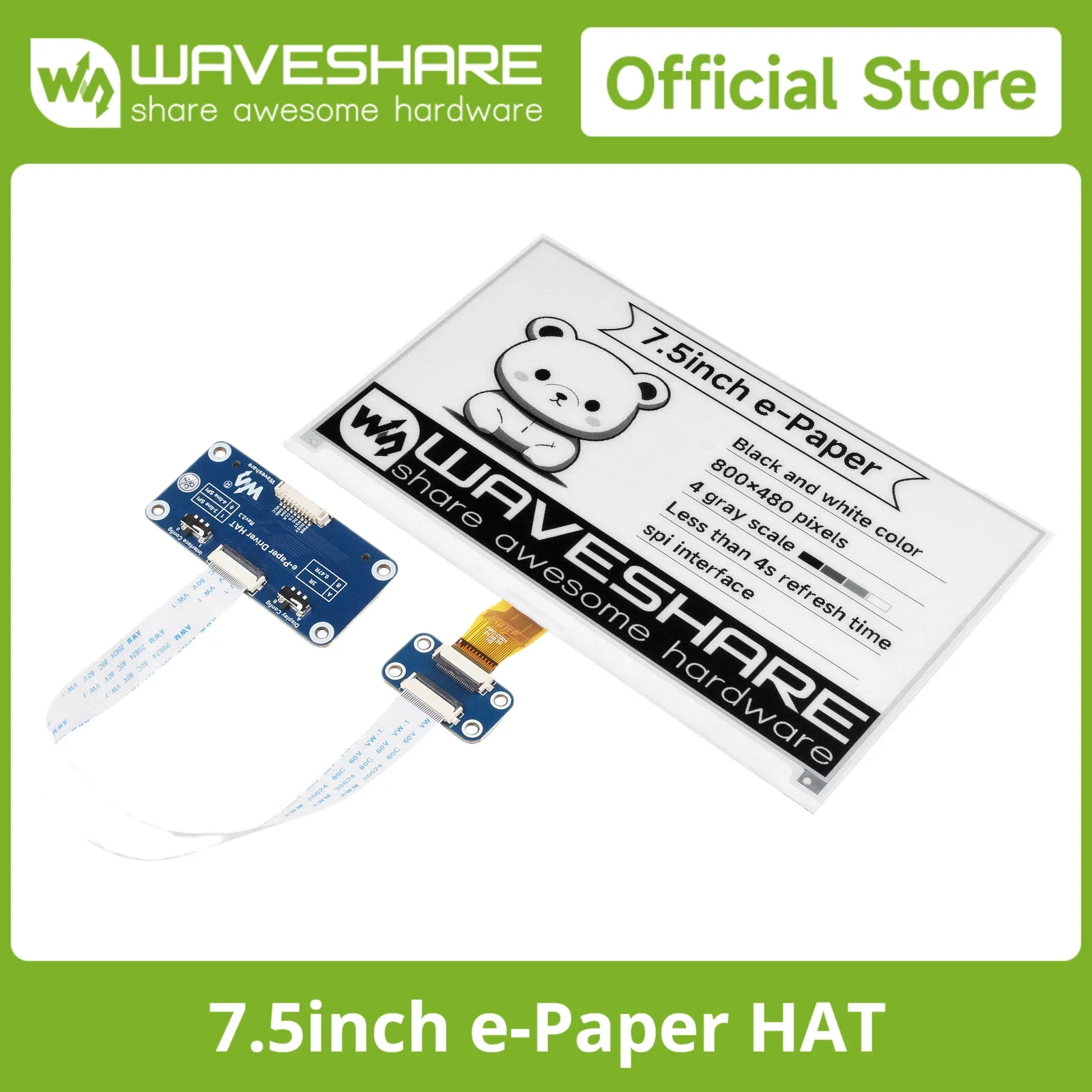 Waveshare Display e-paper HAT E-Ink da 7,5 pollici 800x480 Supporta Raspberry Pi 5/4B/3B/Pi Zero/Zero/Jetson Nano/Arduino/STM32