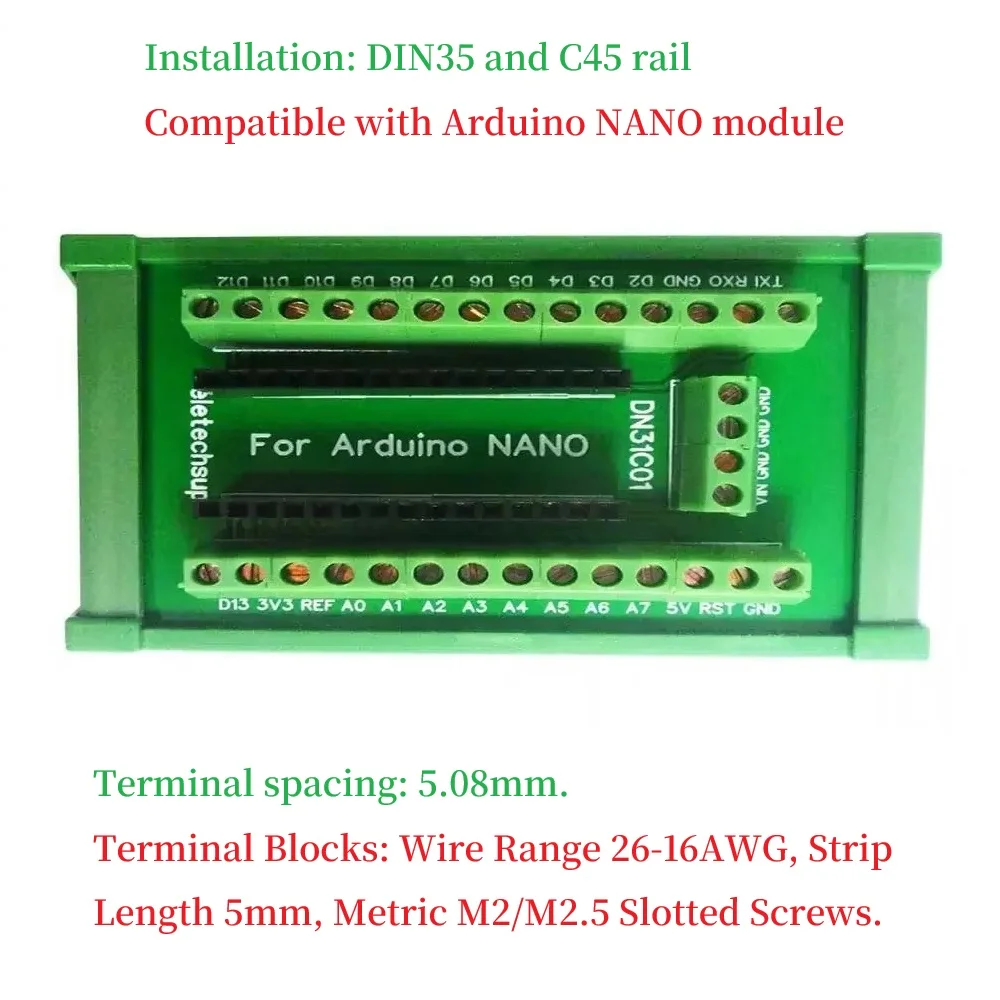 NANO V3.0 DIN35 C45 Scheda di espansione su guida DIN Modulo adattatore per morsettiera a vite con montaggio da 3,96 mm per Arduino Open PLC Smart Home