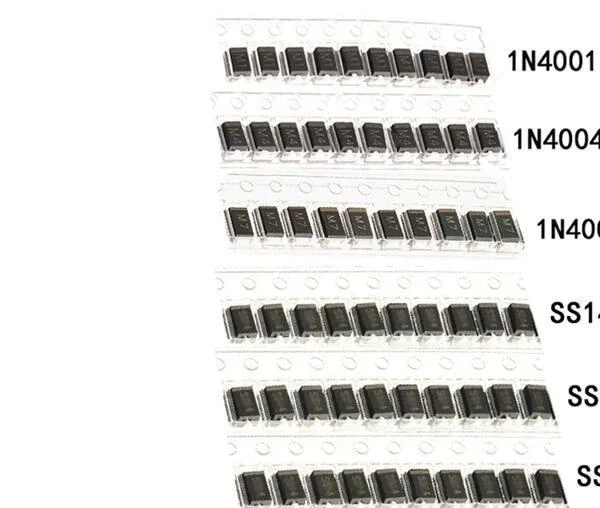 Kit diodi raddrizzatori Schottky SMD da 90 pezzi 9 valori 1N4007 1N4001 1N4004 SS14 SS16 SS24 SS26 SS34 SS36
