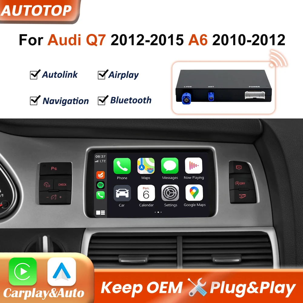Modulo di Interfaccia CarPlay Wireless per Audi Q7 4F 2012-2015 A6 C6 4L 2010-2012 Android Auto Mirror Link AirPlay Bluetooth GPS