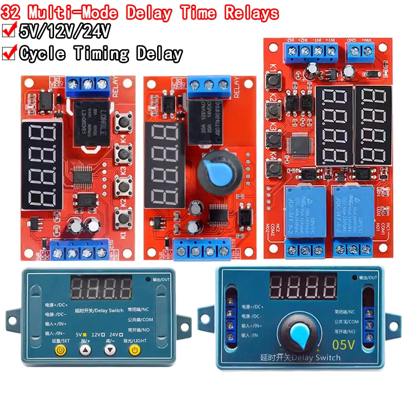 Modulo relè di ritardo a doppia modalità, scheda interruttore timer on/off con 2 modalità regolabili, circuito di controllo trigger DC 5V 12V 24V