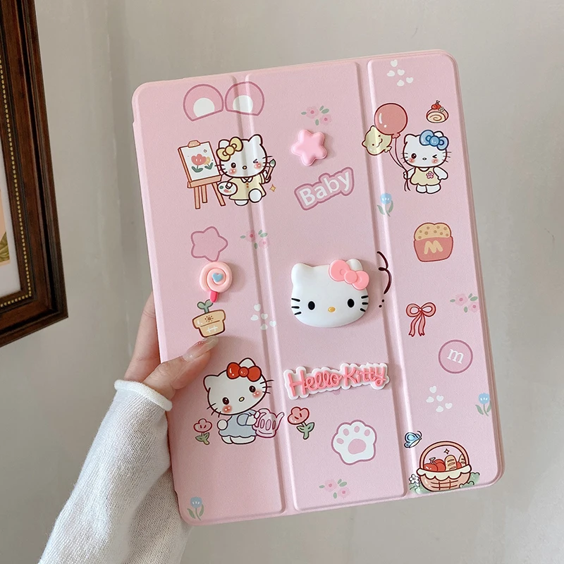 Custodia per Tablet Hello Kitty con Tastiera Wireless per iPad 11ª Gen A16 Air7/6 Pro 11 pollici, 10ª Gen 10.9, Air4 5, 9ª Gen 10.2 pollici, Custodia Girevole
