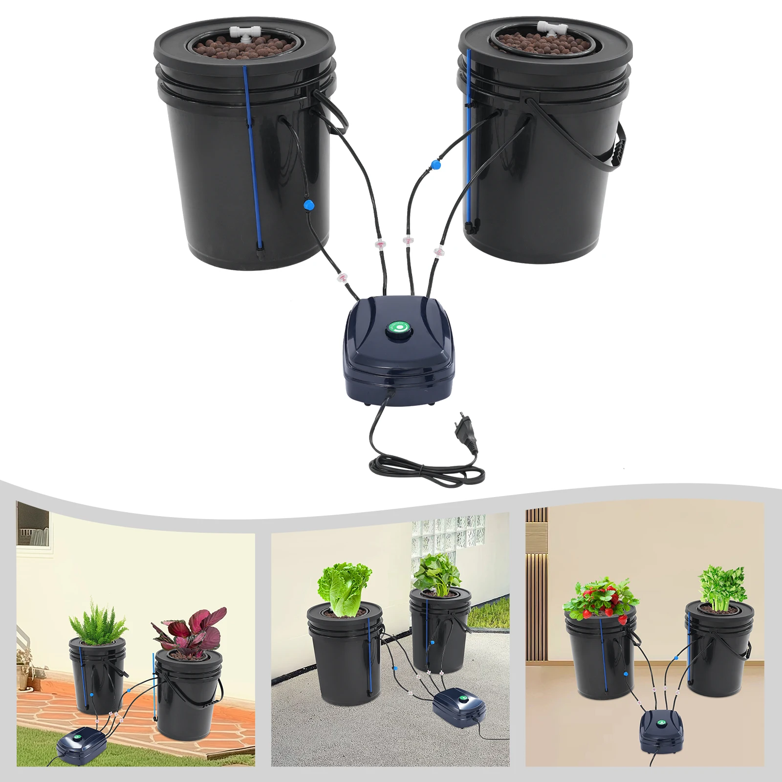 Sistema di coltivazione idroponica Cultura dell'acqua profonda da 5 galloni con pompa ad aria da 12 W 2 tubi di livello dell'acqua Secchi per piantare e kit antigoccia per vasi