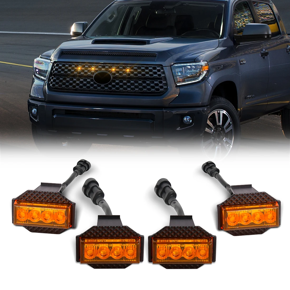 4 Luci LED Stroboscopiche per Griglia Anteriore Toyota Tundra 2018-2021, Luci Diurne e di Avvertimento Ambra 12V