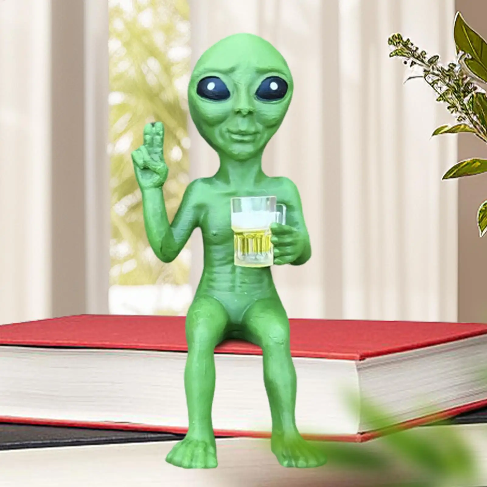 Statuetta di Alieno che Beve Birra, Scultura in Resina, Ornamento Piccolo per Camera da Letto, Libreria, Ufficio, Ingresso, Casa