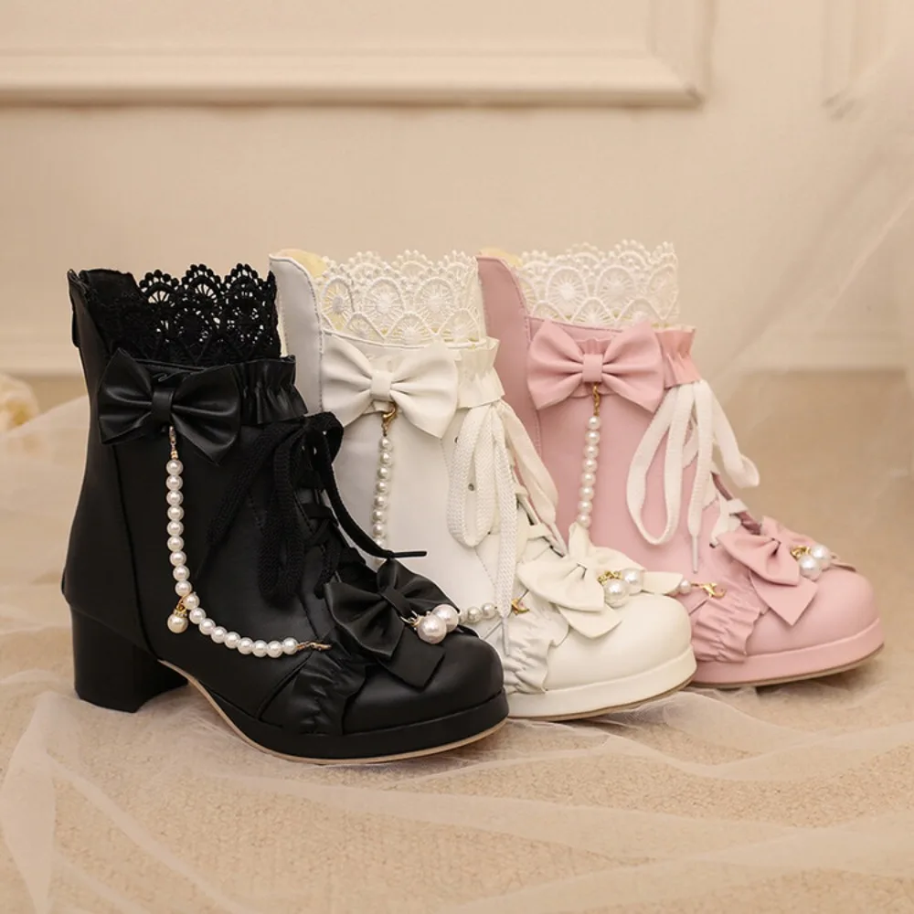 Nuove Scarpe da Donna con Tacco Alto e Plateau 2026, con Fiocco, Cinturino alla Caviglia, Lacci e Punta Tonda, Tacco Grosso per Primavera Autunno (Nero/Bianco/Rosa)