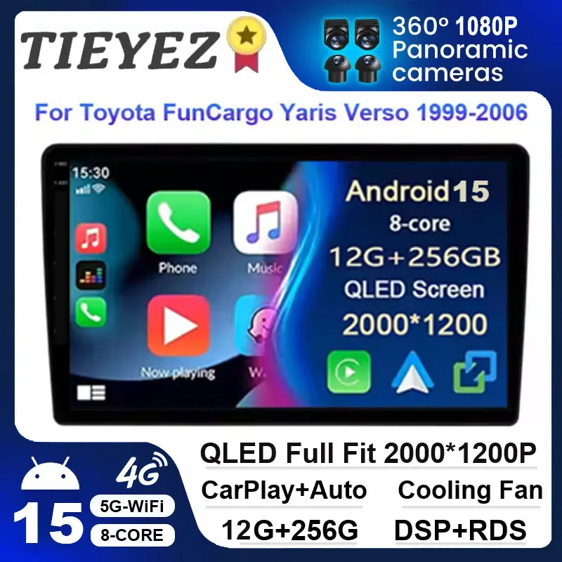 Android 15 Auto Multimediale GPS Per Toyota FunCargo Yaris Verso 1999 - 2006 Radio CarPlay Auto Stereo 4G Wifi DSP BT No 2Din DVD