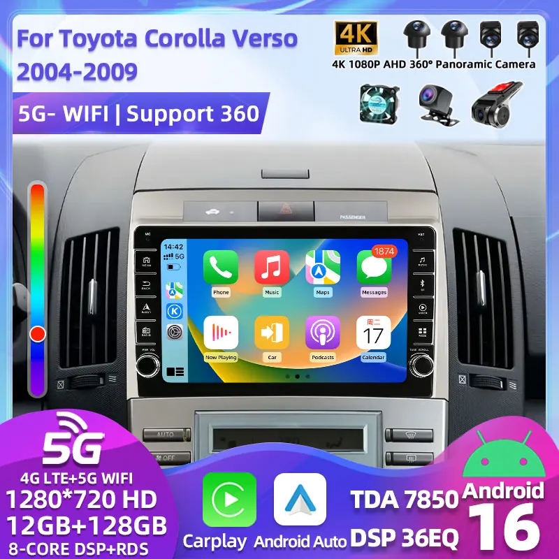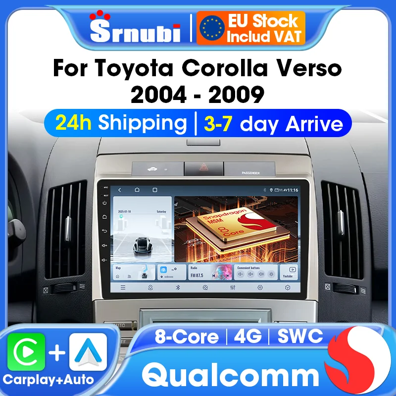 Autoradio Android 15 Per Toyota Corolla Verso AR10 2004-2009 DSP 4G LTE Viedo Lettore Qualcomm Navigazione GPS Autoradio 5G WIFI