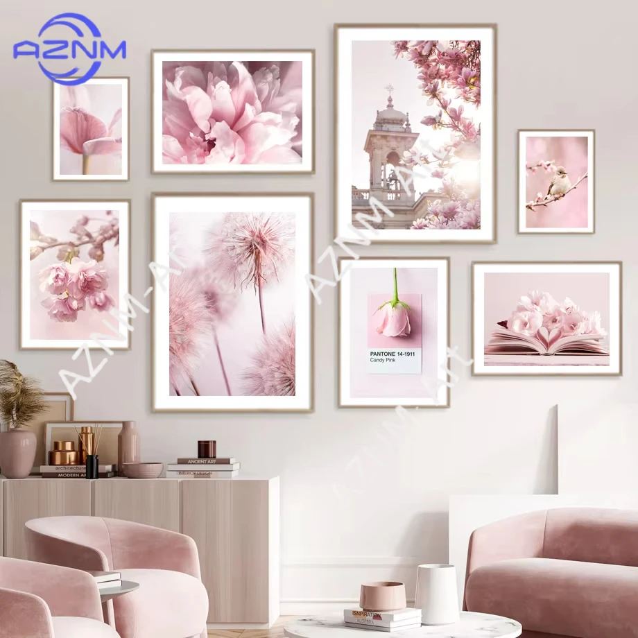 Primavera Rosa Rosa Peonia Sakura Dente di leone Orchidea Passero Auto Giardino Poster Fiore Wall Art Canvas Painting Home Room Decor