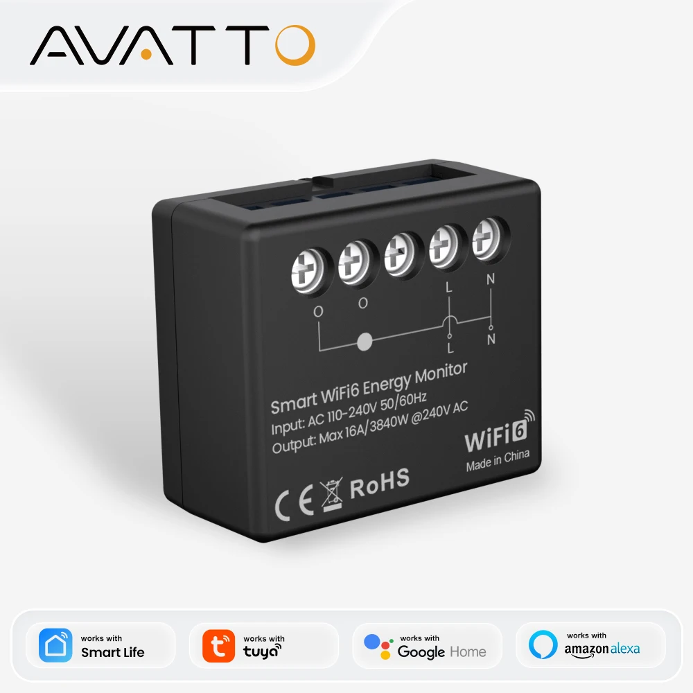 Modulo Misuratore di Energia Smart Mini WiFi 6 AVATTO, Dati Esportabili, con Monitoraggio della Potenza, Supporto Tuya Alexa Google Home Alice