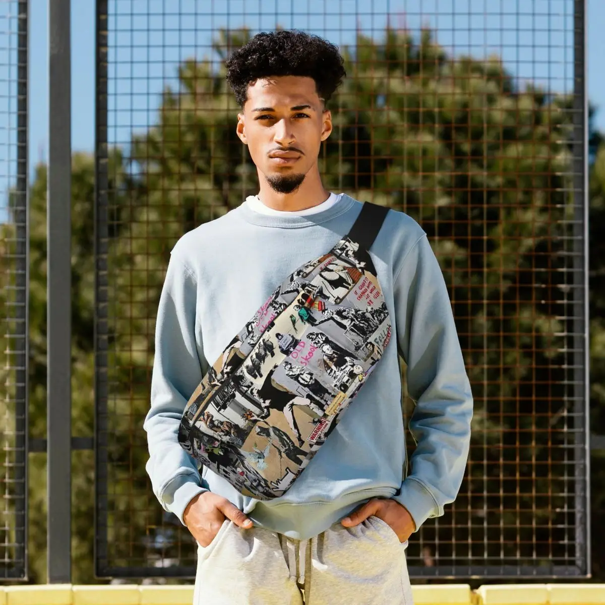 Marsupio a tracolla Banksy Collage per uomo e donna, regolabile, per viaggi, corsa, contanti, telefono, borsa da petto