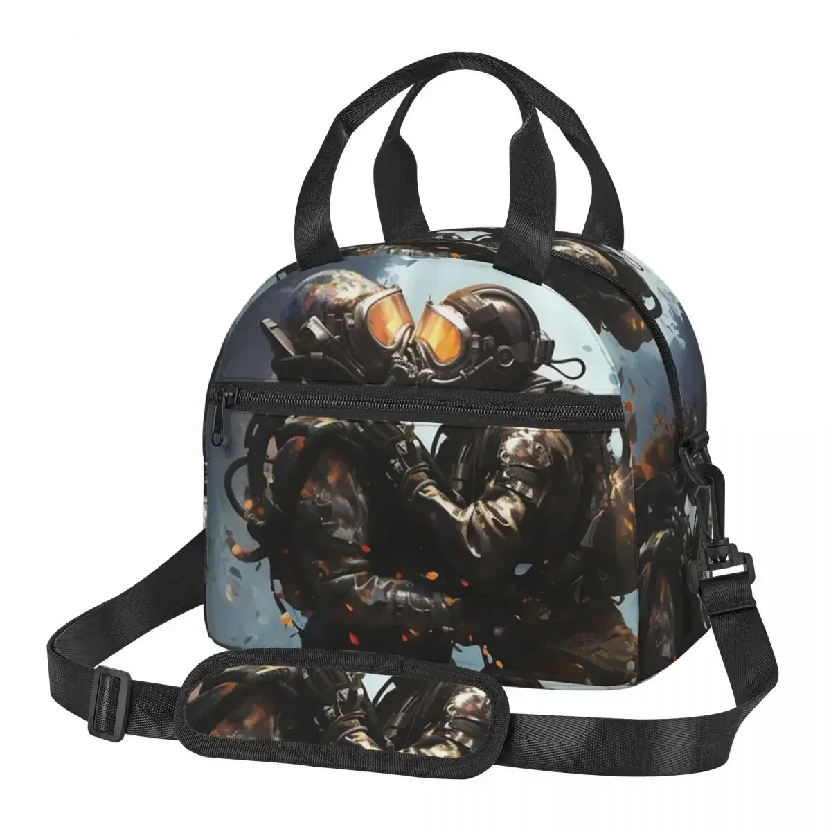 Banksy Coppia romantica che indossa caschi per immersioni in acque profonde Borse per il pranzo Bento Box Lunch Tote Borse da picnic Borsa termica per donna Studente
