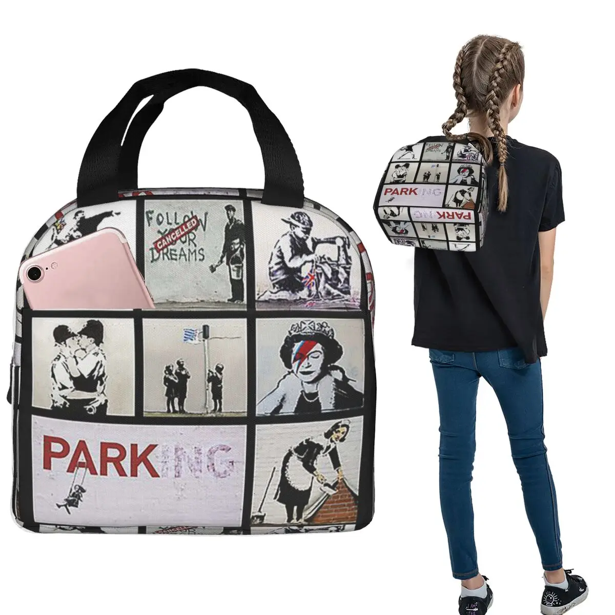 Banksy Montage 01 Vari opere d'arte di Banksy Borsa termica per il pranzo per donne e bambini, scatole portatili per alimenti, borsa termica per il pranzo