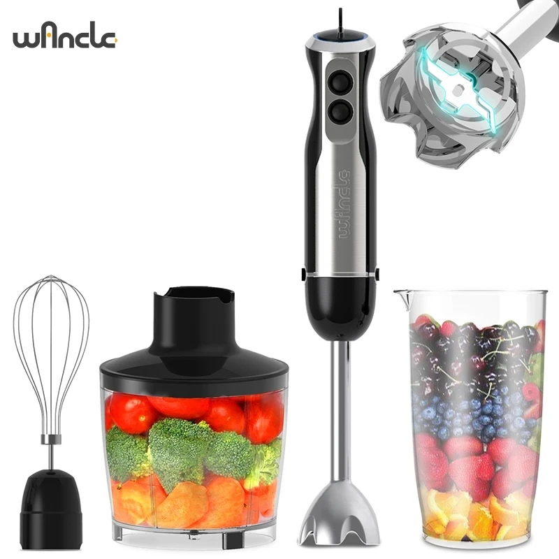 Set frullatore portatile 4 in 1 da 1000 W, miscela ad immersione, inclusa stick multifunzione, frusta, tritatutto e bicchiere, per la lavorazione degli alimenti