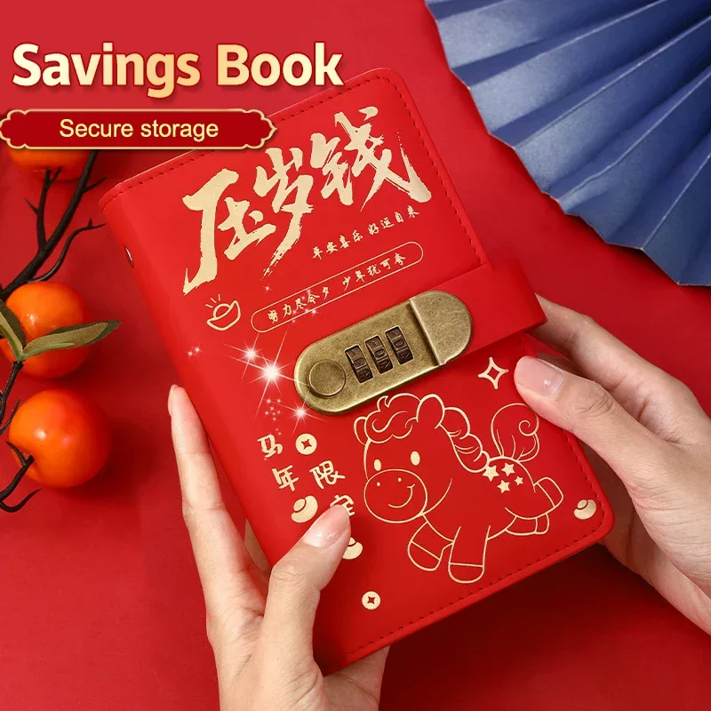 Con blocco password 100 buste Sfida di risparmio di denaro Raccoglitore di risparmio in PU di denaro fortunato Libro di raccolta di denaro portatile riutilizzabile