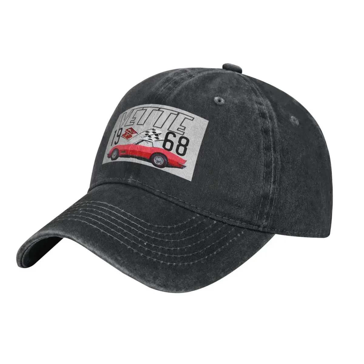 Cappellino Snapback in Denim con Stampa Auto Classica Corvette C3 Rossa del 1968, Berretto Sportivo da Baseball Stile Cowboy per Uomo e Donna