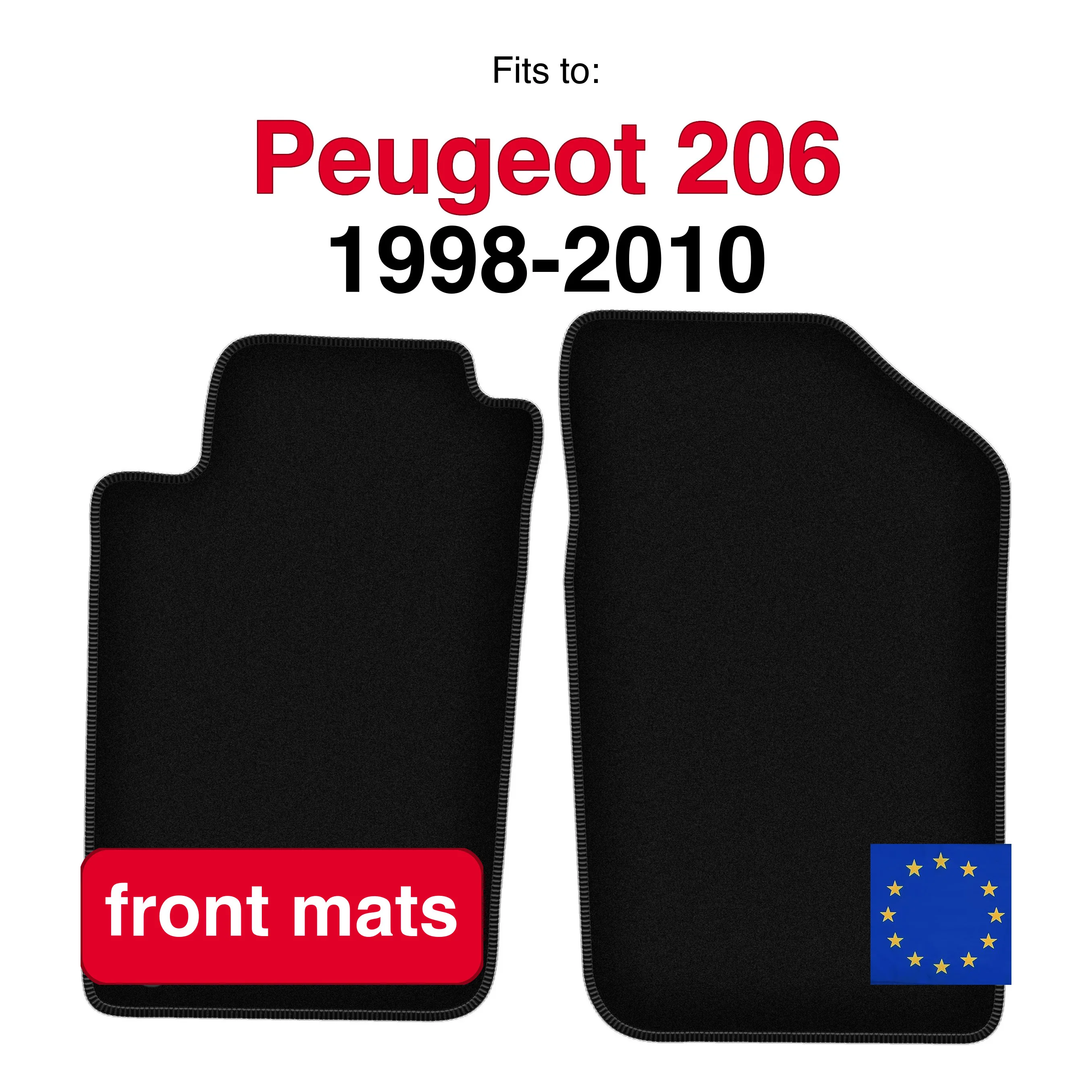 Tappetini anteriori in velluto per Peugeot 206 hatchback, SW, station wagon, CC, convertibili (1998-2010) -Nero (2 pz)