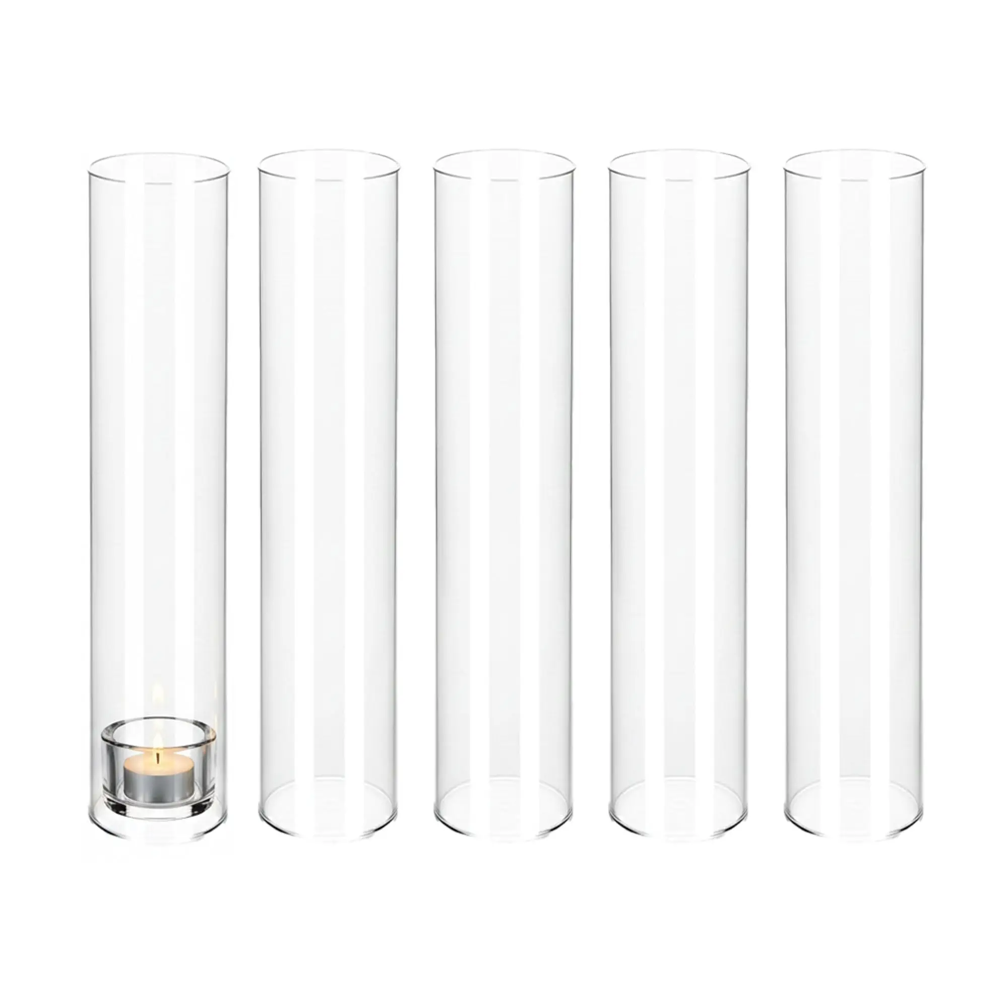 Coperture in Vetro Hurricane per Portacandele 24.5cmx5cm/9.6"x1.97" Tubi Cilindrici Trasparenti Aperti, Paravento Antivento Senza Fondo