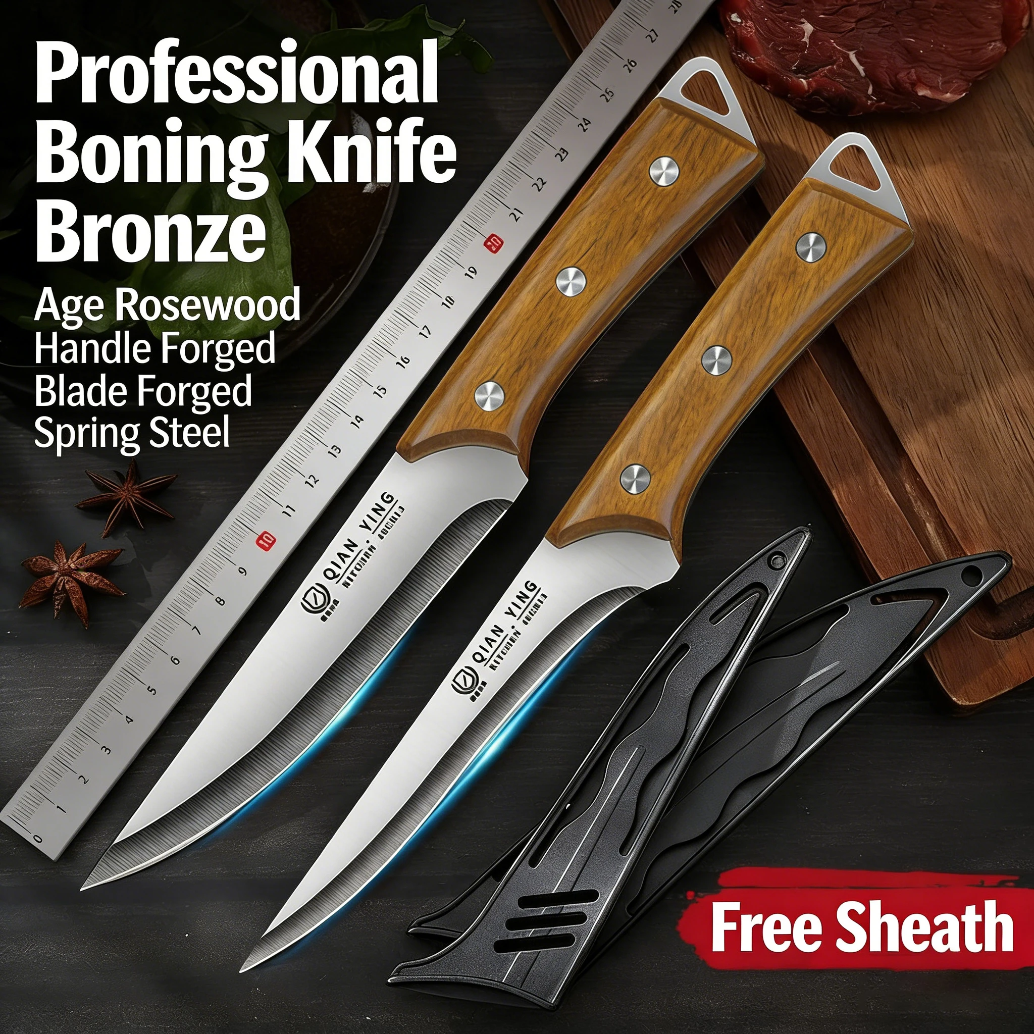 Coltello da intaglio multiuso in acciaio inossidabile con protezione per la lama, coltello da bistecca professionale da cucina con manico in legno, coltello da frutta