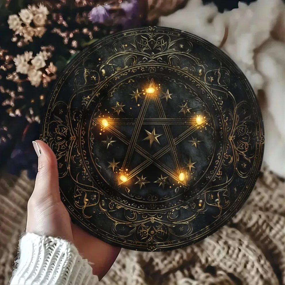 COMIO 2D Wall Art Piatto 8x8 pollici Targa in alluminio Vintage Pentagramma celeste Stella Design Decorazione mistica in metallo impermeabile