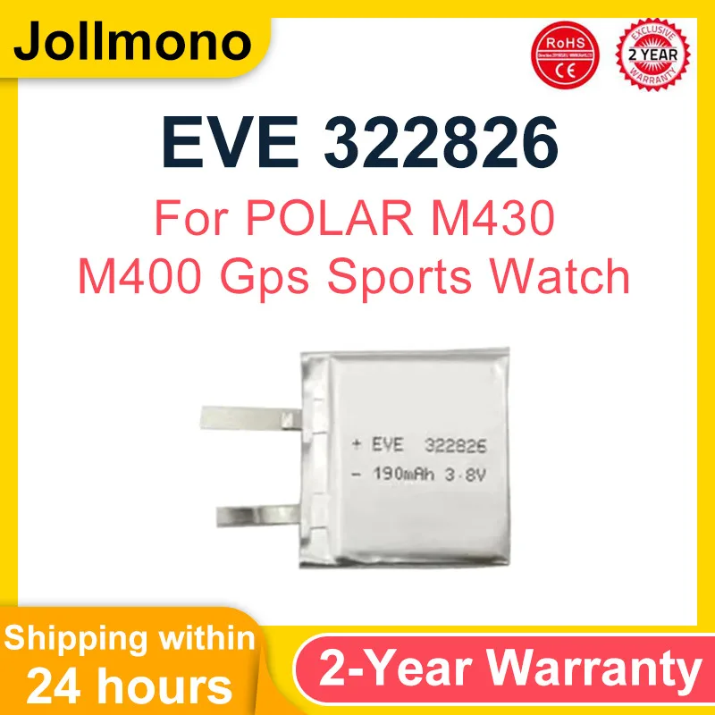 Batteria di ricambio 322826 Batteria da 190 mAh per POLAR M430 M400 GPS Orologio sportivo Batteria di alta qualità EVE322826 + Strumenti