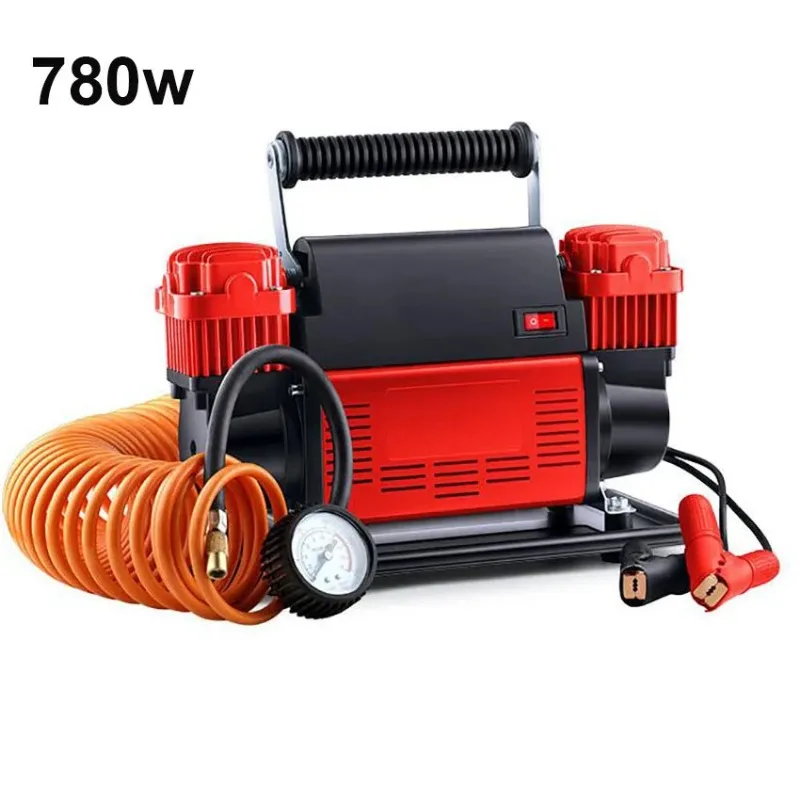 Compressore d'aria portatile Gonfiatore per pneumatici Pompa d'aria a doppio cilindro per auto Pompa d'aria ad alta pressione ad alta potenza da 780 W con orologio meccanico