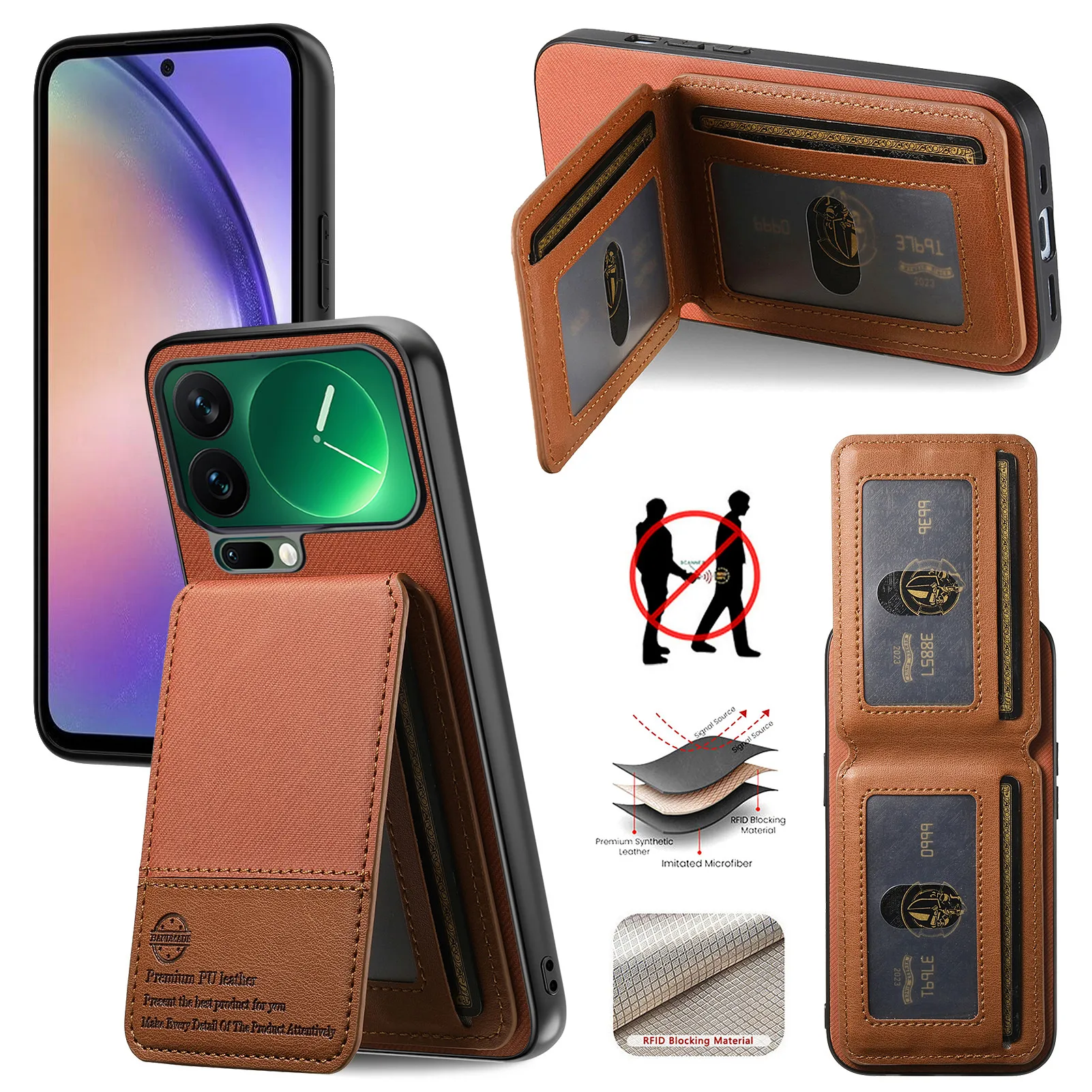 Carte verticali aziendali Solt Twill Weave aperto su e giù Porta telefono Portafoglio Custodia in pelle per Xiaomi 17 Pro Max 15T RFID Cover