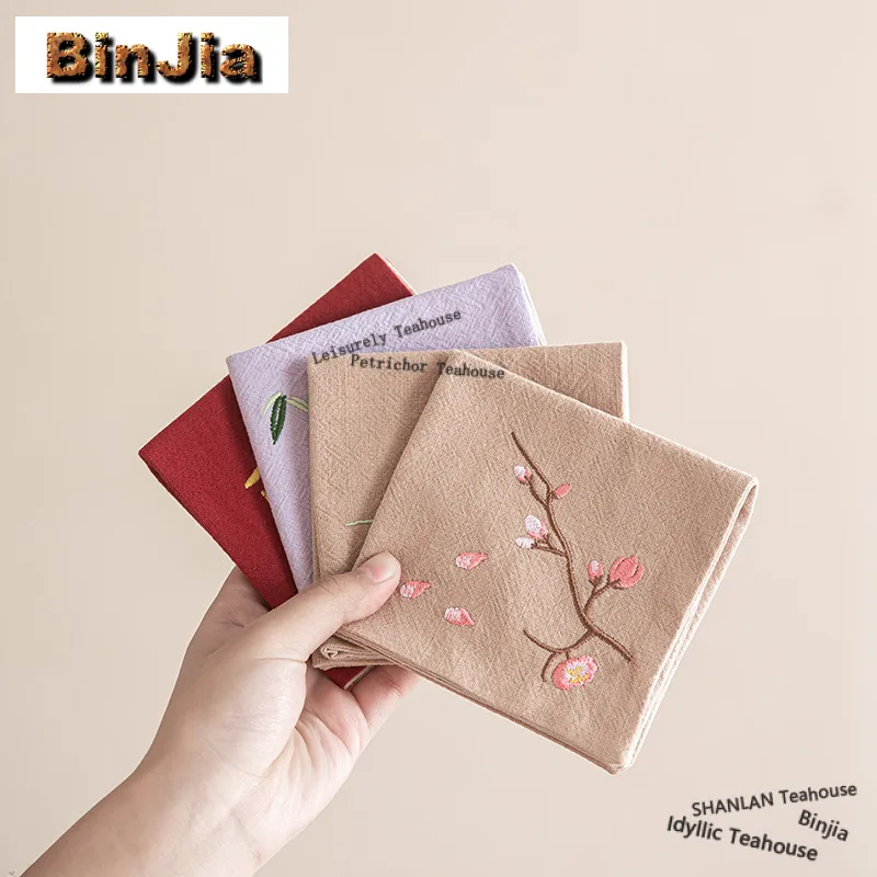 Asciugamani da Tè in Cotone Ricamato con Motivi di Prugne, Orchidee, Bambù e Crisantemi, Sottobicchieri Retrò, Tovaglioli da Tè, Panni per Tè Domestici, Collezione per Caffetterie
