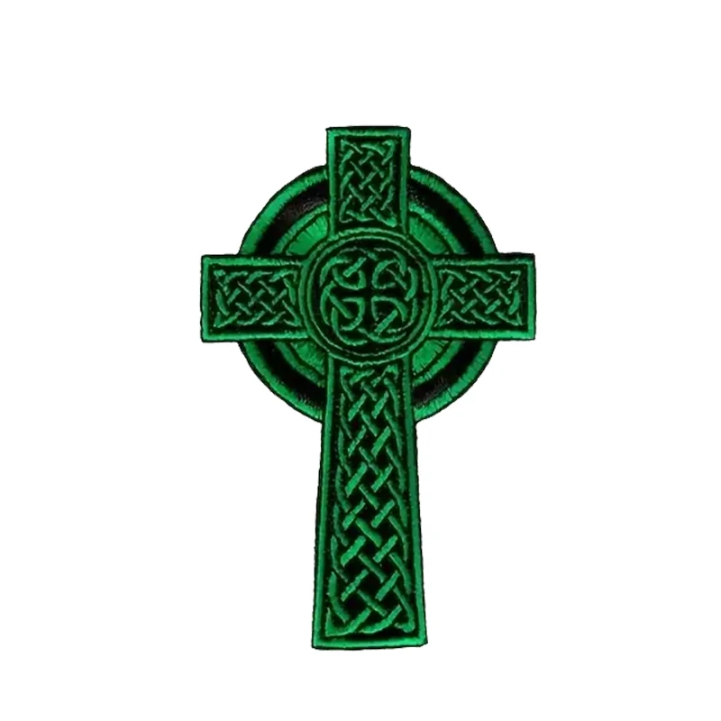 1PC Croce Verde Con Fiori Toppa Ricamata Ferro/Cucitura Su Toppe E Stemmi Per Abbigliamento Berretto Borsa Giacca Trucker Regalo FAI DA TE Distintivo adesivo