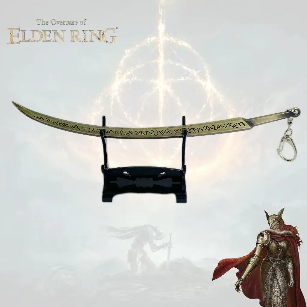 Portachiavi Spada Curva Elden Dark da 22 cm (9 pollici) in Bronzo, Dettagliato e Scolpito, Anello Portachiavi in Metallo ad Alta Densità, Regalo Ispirato al Gioco Fantasy Epico