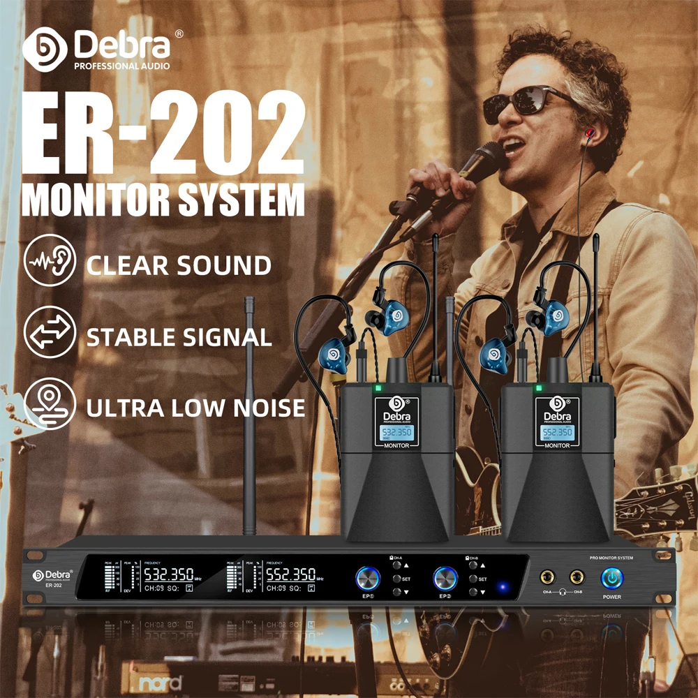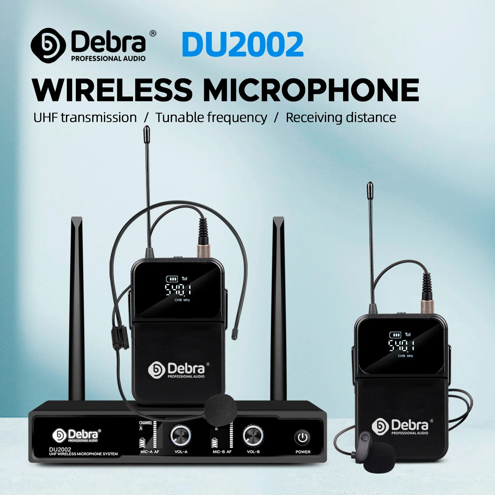 Debra Audio UHF Mic AU-400 Sistema microfonico wireless a 4 canali Portatile/Bodypack Lavalier e auricolare per feste sul palco in chiesa.