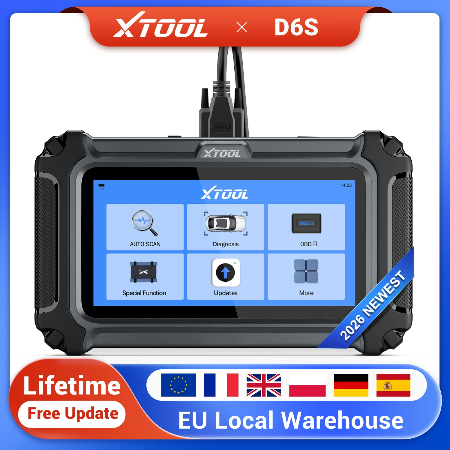 Strumento diagnostico scanner OBD2 XTOOL D6S, scanner per auto 2026 con 30 ripristini, strumento di scansione di tutti i sistemi con aggiornamento gratuito a vita FCA e CAN FD, versione aggiornata di D5S